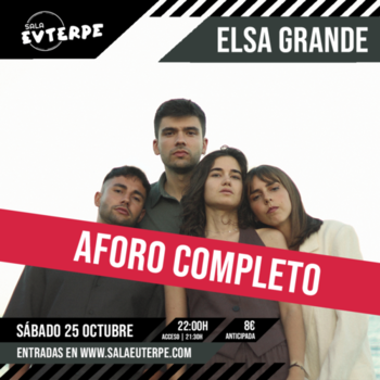 El dissabte 25 amb totes les entrades esgotades torna Elsa Grande. Nascut d’un projecte universitari i ara florint en l’escena musical alacantina, Elsa Grande es va posicionar en 2022 com un grup emergent de pop alternatiu, fusionant influències del pop-rock espanyol, la música llatina i la música de cantautor. Elsa, compositora i vocalista, acompanyada de Gabi en guitarra i baix, Sofía en teclat i guitarra, i Sergio en bateria i calaix, formen aquest quartet que combina autenticitat i frescor. Amb una mescla de ritmes i melodies, els seus concerts creen una atmosfera acollidora i intensa convidant al públic a submergir-se en una experiència musical pròxima i plena d’emocions.