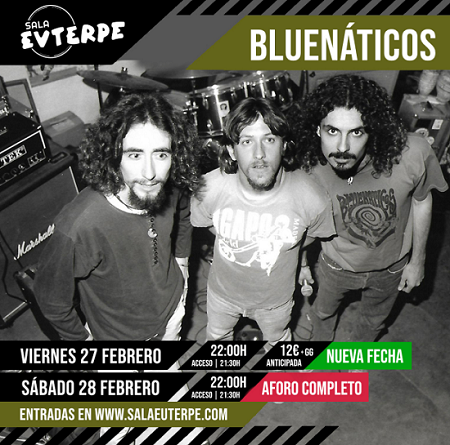 El viernes 27 y el sábado 28 de febrero a las 22h, tenemos una doble cita con la banda alicantina Bluenáticos. Con las entradas agotadas desde hace semanas para el sábado y con las del viernes a punto de agotarse, esta mítica banda aprovecha este año para celebrar los 30 años de la publicación del 2⁰ LP. «Badulaque (1996)» disco producido por Fernando Pardo (Sex Museum). Bluenáticos vuelven al Euterpe para montar un «festivaaaal!!!» en el que, además de este disco, darán un repaso al resto de su historial delictivo.