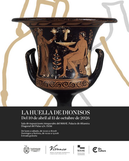 ‘La huella de Dionisos’ podrá visitarse hasta el 11 de octubre de 2026 en la Sala de Exposiciones Temporales del MAHE, en horario de lunes a sábado de 10:00 a 18:00 horas, y domingos y festivos de 10:00 a 15:00 horas, con entrada gratuita.
