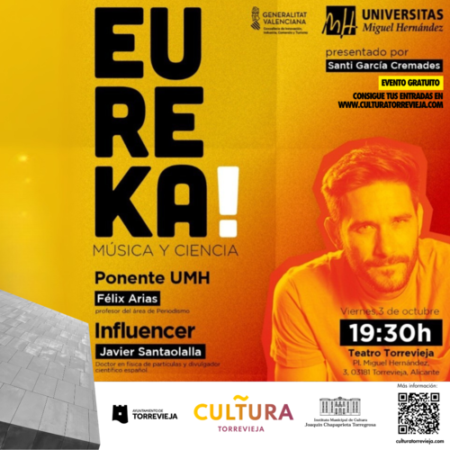 El viernes, 3 de octubre, a las 19:30 horas, se presenta “Eureka! Música y Ciencia” en el Teatro Municipal de Torrevieja. Eureka es un espectáculo que combina divulgación científica, entretenimiento y música en directo, para lo cual el público ha respondido de manera masiva y todas las invitaciones para esta cita se han agotado.
