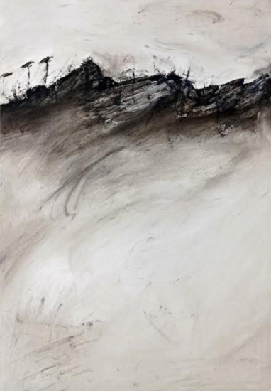 Horitzons, camps i arquitectures insinuades emergeixen des d’una pintura gestual i continguda.