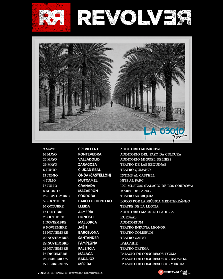 El 9 de mayo Revolver actuará en Crevillent (Auditorio Municipal) y seguirá el 16 mayo en Pontevedra (Auditorio del Pazo da Cultura); 23 mayo en Valladolid (Auditorio Miguel Delibes); 29 mayo en Zaragoza (Teatro de las Esquinas); 6 junio en Ciudad Real (Teatro Quijano); 13 junio en Onda, Castellón (Intims al Castell); 4 julio en Mutxamel (Nits al Parc); 17 julio en Granada (1001 Músicas); 8 agosto en Mazarrón (Mares de Papel); 26 septiembre en Córdoba (Teatro Axerquia); 5-8 octubre en Barco Ochentero Locos por la Música Mediterráneo; 10 octubre en Lleida (Teatre de la Llotja); 17 octubre en Almería (Auditorio Maestro Padilla); 23 octubre en Donosti (Kursaal); 1 noviembre en Mallorca (Auditorium); 6 noviembre en Jaén (Teatro Infanta Leonor); 18 noviembre en Barcelona (Teatro Coliseum); 20 noviembre en Santander (Teatro Casyc); 22 noviembre en Pamplona (Baluarte); 27 noviembre en Palencia (Teatro Ortega); 12 diciembre en Málaga (Palacio de Congresos FYCMA); en en 2027, el 26 febrero en Badajoz (Palacio de Congresos de Badajoz); y el 27 febrero en Mérida (Palacio de Congresos de Mérida).