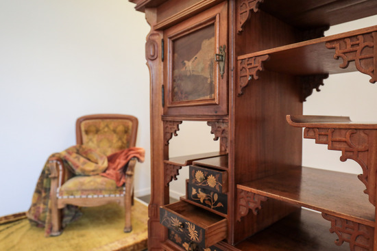 Entre las piezas más destacadas figuran una pareja de sillas atribuidas a Joan Busquets i Jané, un sillón y un banco modernistas, una mesa costurero de mármol y madera satinada, un mueble orientalista de finas marqueterías y el Retrato de una dama, realizado en 1908 por Manuel Benedito y Vives, considerado uno de los retratistas más sobresalientes del primer tercio del siglo XX.