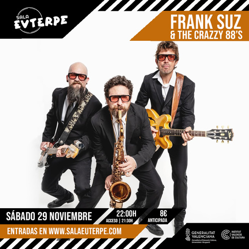 El sábado 29 de noviembre a la misma hora será el turno de Frank Suz & The Crazzy 88’s. Tras sus tres discos en solitario y girar por todo el país, Frank Suz presenta su nuevo trabajo, un nuevo formato instrumental de rock & roll, surf y garaje formado por cuatro músicos, llamado Suz & The Crazzy 88’s. Un repertorio compuesto por temas propios y algunas versiones cuidadosamente seleccionadas, con mucha energía, actitud y buen rollo. Un directo potente y muy trabajado por músicos de dilatada experiencia. Tras el éxito de los dos singles de adelanto, se disponen a grabar un álbum completo, barajando producciones de Dani Nello (Los Rebeldes) o Henrik Rover (Los Deltonos).
