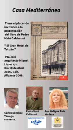 El próximo 10 de abril a las 19.00 h Casa Mediterráneo acoge la presentación de «El Gran Hotel de Tetuán» de Pedro Maté Calderoni.