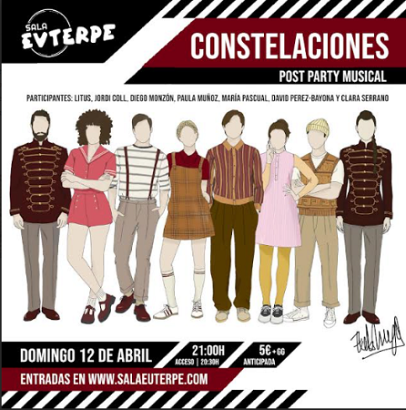 También el domingo 12, pero en horario nocturno a las 21h, la sala Euterpe acogerá un evento especial y único. Nos traen una Improvisación musical o una post party musical con el reparto de la obra teatral “Constelaciones” (Litus, Jordi Coll, Diego Monzón, Paula Muñoz, María Pascual, David Perez-Bayona y Clara Serrano). En la física cuántica y en la teoría de los universos paralelos, se explica que varias situaciones pueden coexistir. Y básicamente eso es este evento, que comienza como el recreo del elenco artístico de «CONSTELACIONES», la obra teatral versionada y dirigida por Sergio Peris-Mencheta, y con la dirección musical de Litus y Joan Miquel Perez, que se representará el domingo 12 de abril a las 18:00h en el Teatro Principal de Alicante. Y a las 21:00h, en Euterpe, dentro de este multiverso cuántico, sucederá una especie de Jam, algo parecido a un concierto sin pretensiones ni obligaciones, una reunión de amigas y amigos disfrutando de la música y en la que nos gustaría que nos acompañases. Una experiencia única que no volverá a repetirse en ninguna dimensión. ¡No te lo pierdas!
