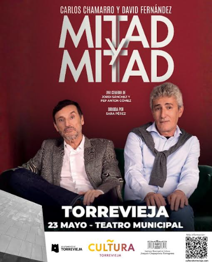 El 23 de mayo, a las 20:00 horas, llegará también al Teatro Municipal la obra “Mitad y Mitad”, una comedia ácida y políticamente incorrecta protagonizada por Carlos Chamarro y David Hernández, con dirección de Sara Pérez y texto de Jordi Sánchez y Pep Antón Gómez.